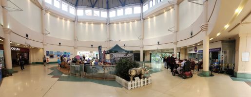 We played at The Colonnade which is an impressive circular break in the Arcade with a high vaulted ceiling which did a good job of enhancing the sound of our playing. The first picture below gives you a panoramic view of the area. (As you can see, another possible draw for the band was the proximity of Costa Coffee.)