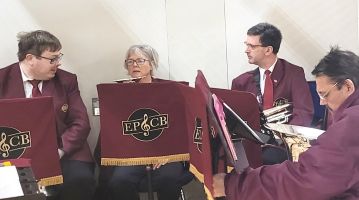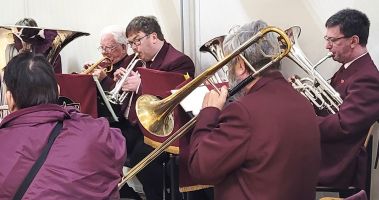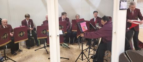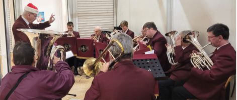 And we're off. A well-balanced ensemble producing a good Christmas sound. Although the empty seat next to the baritone was occupied by our Euphonium player. Unfortunately, his playing was so erratic that he had to be sent off to take photographs.