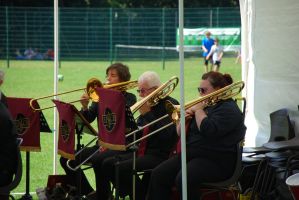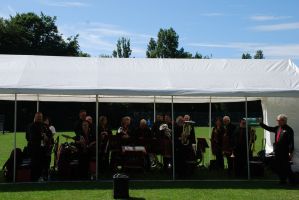 Just click on the picture above of the band in the marquee to see a video showing short extracts from the concert. The pieces featured are, Ferry 'cross the Mersey, Ammerland, Lamgstrump Samba, L.O.V.E. Pirates of the Caribbean, Ballad for Benny and Themes of 007.