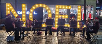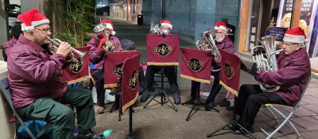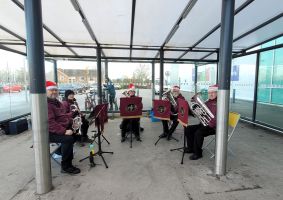 On the 8th December we played at Cheshire Oaks Retail Park in freezing conditions. Luckily no valves seized and we only suffered minor frostbite. As you can see, they gave us an excellent spot to play. Unfortunately, however the LED lights don't give off much heat. Follow Cheshire Oaks Caroling to see more pictures.