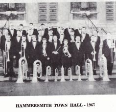 The band continued with steady progress throughout the 1950's and in the 1960's enjoyed the greatest triumph when the band went to London to compete in the National Brass Band Championships for two successive years. in 1966 and 1967 the reached the Championship finals and came 9th out of 23 bands in 1966 and 10th out of 22 in 1967 at Hamersmith. You can see the results at 1966 Fourth Section Results and 1967 Fourth Section Results. The picture at Hammersmith Town Hall was taken there.